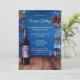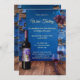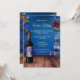 Um convite de festas de provando de vinho cônico rústico, com garrafa de vinho, uvas e taças de vinho em azul com calha. Bonita para um aniversário ou outra celebração ou evento de provando de vinho.
