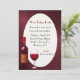 Um rico fundo burgundy damask dá o tom para este convite elegante para provando de vinho. Um oval branco, no meio, tem burgundy personalizada e texto preto pronto para personalizar para vocês se juntarem. Lindos gráficos de uma garrafa de vinho e uma taça de vinho tinto decoram o canto inferior esquerdo.