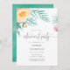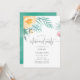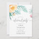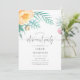 Convites de festas de reforma floral exótica, cor-de-rosa e amarela, que contenham peões, eucalipto, roseqos, suculentos, lisianthus, folhas e suculentes de menthol