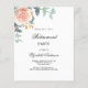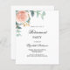 Para uma festa de aposentadoria. Um fundo branco, rosa de cor rosa, flor e verde de eucalipto de cor. Personalize e adicione as informações da parte. 1 folha = 1 convite impresso de borda a borda.