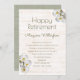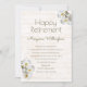 Orquídeas brancas convite de festas de aposentadoria para uma mulher, com fundo de madeira rústico. O texto esverdeado é fácil de personalizar com informações de festas e orquídeas tropicais bonito decoram os cantos. "Reforma Feliz" no topo com o nome abaixo e todas as informações de celebração são adicionadas na forma de parágrafo. Use tantas linhas quantas precisar e adicione espaços como preferido. O reverso também é um design de madeira.