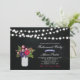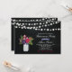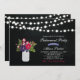 Celebre seu dia especial com este modelo de convite para na moda. Este design apresenta luzes de cordas, jarro de pedras e buquê de flores com fundo de quadro.
