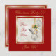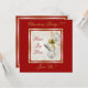 Convite de festas De Sinos E Ornamentos De Natal. Um elegante e elegante convite de festas de Natal, com dois sinos de Natal e dois ornamentos com fitas e morango sagrado em tons de cinza de prata e marfim, num quadro de ouro sobre fundo vermelho. Personalize com seu texto.