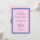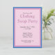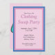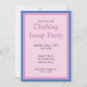 Entediado com suas roupas atuais? Planejar uma festa de troca de roupa? Este convite permite que você insira suas informações personalizadas de data, local e RSVP. Lá atrás está uma foto de um vestido e uma saia. O esquema de cores do cartão é rosa e azul.