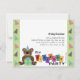 Esta design apresenta um urso marrom segurando um presente e vestindo um chapéu de festa. Uma variedade de cupcakes enquadram este design e blocos coloridos com o texto "Aniversário" para completar a aparência. Há um monte de texto personalizável na frente para todas as informações da sua festa! Texto personalizável na parte traseira para indicações de direção ou qualquer outra informação que você queira adicionar. Se nenhuma informação adicional for necessária, você poderá limpar o texto e a imagem permanecerá. Comprar em massa e guarde!