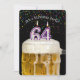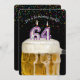 Vela número 64 em caneca de cerveja com confete colorido em preto para o convite para a 64ª festa de aniversário.