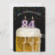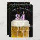 Numero 84 velas em caneca de cerveja com confete colorido em preto para convite para a 84ª festa de aniversário.
