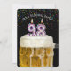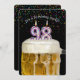 Numero 98 velas em caneca de cerveja com confete colorido em preto para o convite para a 98ª festa de aniversário.