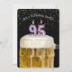 Vela número 95 em caneca de cerveja com confete colorido em preto para o convite à festa de aniversário 95.