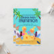 Celebre o verão em estilo com este adorável Convite de festas Kids Beach com uma cena colorida de castelo de areia, crianças brincalhonas, palmeiras e detalhes tropicais. Perfeito para festas de aniversário de verão, reuniões familiares ou eventos relacionados a praia. Personalize seus detalhes de eventos e informações de RSVP para torná-los exclusivos! Impresso em estoque de cartão de alta qualidade e ideal para crianças e comemorações amigáveis à família. Excelente para: Festas de verão, festas de praia, aniversários de criança e eventos temáticos tropicais.