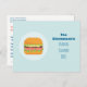 Um cartão postal de convite de festas de CHURRASCO projetado com uma ilustração de um simples hambúrguer. Alface, tomate e carne. Simples e delicioso.