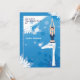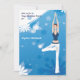 Um convite de festas de yoga moderno e juvenil perfeito para adolescentes e adultos. Os tons de blues salpicavam com margaridas brancas e uma linda garota numa pose de árvore.