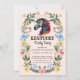 Convite de festas da Raça Moderna Derby do Partido Equestre Equestre Invitation Modern Horse Race Derby com ilustração de um cavalo de corrida com jóquei e padrão riscado nas costas. Todos os elementos de texto podem ser alterados para que este design possa ser usado para outros eventos também: convite para casamento equestre clássico, festa de aniversário de cavalo, festa de relógio derby, abertura de celeiro de cavalo e muito mais. Fundo, cor da ilustração e cores do texto podem ser alteradas com a ferramenta design!
