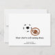 Um legal convite de aniversário desportivo temático. Uma bola de futebol azul e branca e um sotaque de futebol marrom aparecem este convite divertido. Personalize com todas as suas próprias informações conforme desejado.