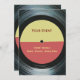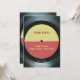 Promova seu evento de tema de música com este cartão de convite. Ele apresenta um recorde de música de vinil preto que preenche o cartão. O rótulo central, em amarelo e vermelho, tem espaço para informações sobre sua dança, o evento de tema musical do DJ - o quê, onde, quando e quem está aparecendo. Há espaço atrás para mais informações.
