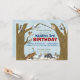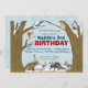 Os passarinhos pequenos dizem, esse alguém estão tendo um aniversário! Este convite de festas winterized lunático da floresta é enchido com os animais amigáveis em seus chapéus do partido-- apronte para o divertimento. Um fundo macio do floco de neve, um tipo festivo e umas ilustrações animais do vintage-estilo enchem este convite com o encanto da floresta… que um perfeito procura seu partido nos meses de inverno.
