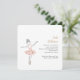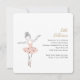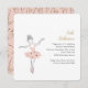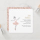 Balé adorável, convite de festas de meninas com tema apresentando uma doce ilustração de uma bailarina em um tutu dançando em palco em uma rosa claro, prata e paleta dourada.