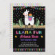 Convite vibrante do aniversário do tema do lama/alpaca para todas as idades!