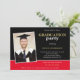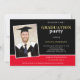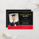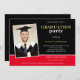 Um design moderno com sua foto de formando e seu texto de na moda. Totalmente personalizável, isso tem letras brancas e douradas em um fundo preto com uma borda vermelha correndo ao longo da borda inferior. Troque facilmente a sua própria foto de orientação para retratos, e o texto também pode ser facilmente personalizado. Se desejar, clique na opção personalizar mais para alterar os estilos de fonte, as cores e também as cores de fundo.