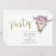 Convite de festas Dourado Boho com Vaca Floral