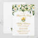 Placa de Convite de festas do Chá de panela Floral Dourado Verde e Branco com Cor de Água - Bordas Arredondadas