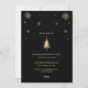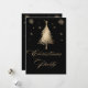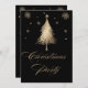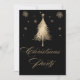 Convite de festas Dourado Elegante de Natal Negro desenhado com Árvore de Natal de cor dourada, Flocos de Neve e Texto sobre fundo preto. O texto da frente inclui: Festa de Natal. O texto inverso inclui: Por favor, junte-se a nós, Data, Hora, Nomes de Anfitrião, Endereço e Detalhes de RSVP, em texto dourado sobre fundo preto. Para personalizar, simplesmente insira os detalhes de sua parte em nosso modelo fácil, substituindo o texto de exemplo. Certifique-se de ver as pratos de festas de Férias, Nápoles e acessórios correspondentes.