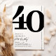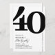 Apresentando um convite de festas aniversário de 40 anos preto e branco eterno que combina perfeitamente o encanto do mundo antigo do número de letra serif ousado '40' com um modelo personalizável moderno e amigável. Este convite não é apenas um cartão, é uma marca significativa para estimar o marco de virar 40.