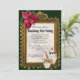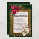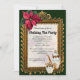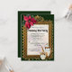 Convite para o Tea Party de Natal com ponsettia vermelha, conjunto de chá branco e dourado e moldura de ouro ornamentado. O reverso tem a mesma cor verde de fundo rica com pontas do solteiro, que é um elemento design escalável e móvel. Totalmente editável.