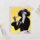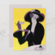 Clique no botão "personalizar" para acessar as ferramentas de design e adicionar seu próprio texto personalizado! Muitos estilos de fonte a serem escolhidos! Ilustração Vintage, imagem deco com uma sofisticada e na moda, vestindo um chapéu. Ela está bebendo chá da tarde e comendo uma massa fresca de cupcake cozido. Versão original amarela.