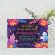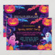 Este convite para a festa de Halloween apresenta um design vibrante e divertido com fantasmas super fofos e abóboras brilhantes e alegres. Os fantasmas adoráveis são redondos e sorridentes, flutuando alegremente através da cena, enquanto os abóboros são cheios de vida, com grandes olhos amigáveis e expressões brilhantes e alegres. O fundo é uma mistura viva de matizes roxas, cor-de-rosa e amarelas vibrantes, criando uma atmosfera que chama a atenção imediatamente. As cores são ousadas e divertidas, dando ao convite um sentido de entusiasmo e celebração. No topo, a legenda diz: "Você é Convidado a um Convite de festas Fantasma Spooky!" em uma fonte divertida e caprichosa que complementa o esquema de cores vivas e os caracteres bonitos. O verso do convite continua o tema com cores mais vibrantes e espaço adicional para detalhes de RSVP ou texto extra, fazer-o um ajustado perfeito para um cheio de diversão e alegria do Halloween. A combinação de fantasmas bonitos, abóboras coloridas, e cores brilhantes e vibrantes garante que este convite se destaque e atrai crianças e pais, dando o tom para um evento de Halloween animado e divertido.