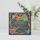 Convite de festas Fiesta mexicano brilhante e colorido com Fiesta ilustrado com sombrero, pimentões picantes e um cacto divertido em fundo de quadro de chanfro. O quadro é feito com galhos, confete, guitarra e maracas. Excelente para qualquer festa temerária mexicana. Ilustração desenhada à mão por McBooboo.