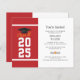 Adicione seu ano de graduação, nome e detalhes do local com data para este moderno fundo vermelho e branco negrito com convite de festa de formatura de tipografia negra usando nosso botão "Personalizar" acima. Convites simples de festa de formatura com rolagem e boné de formatura com cartazes modernos.