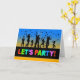Convite de festas geral com uma ilustração digital de uma multidão debaixo das estrelas à noite. Um brilho amarelo está no horizonte, uma multidão dançante está na silhueta, e o Partido do Vamos está escrito em cores brilhantes. Parece que alguns na multidão estão pegando estrelas do céu. Arte, imagem e direitos de autor © Shoaff Ballanger Studios.