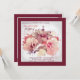 Um armário impressionante de três flores de hibisco com uma cinza de luz respire. Eles estão enquadrados em burgundy e estão em um cartão quadrado.
