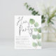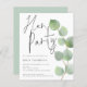 Um valor para o alternativo do ORÇAMENTO em tamanho menor de 4,5 x 5,6" de semirbrilho de 110 lbs, que é de espessura semelhante a um cartão postal (no entanto, não é adequado para uso como cartão postal). POR FAVOR, OBSERVE QUE HÁ UM convite por folha. Festa Hen do Script Eucalyptus Watercolor. Esta design de folhagem moderna para os seus Convidados definiu um roteiro elegante para o Partido Hen no topo e personaliza facilmente com os seus detalhes abaixo e um galho de elegantes folhas de aquarela eucalipto para o lado direito.