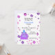 Um hipopótamo roxo vestindo um chapéu de festa, pronto para uma festa de aniversário acentua este convite divertido. Uma fronteira de cubos e designs divertidos adiciona um apelo divertido. Personalize com todas as suas informações conforme desejado.