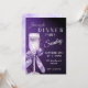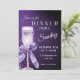 Um convite de festas jante glamouroso e elegante com um fundo brilhante de brilho roxo e um belo design de vidro de champanhe. É uma maneira perfeita e divertida de convidar convidados para o seu evento.