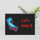 Ter uma multidão legal se juntando? Este convite de festas apresenta o lagarto azul mais fixe do planeta e ele está reclinando com uma bebida rico e uma atitude relaxada. Defina para um plano de fundo preto com as palavras "Partido do Vamos" em uma fonte vermelha divertida. Tira a tua festa de excelente com estes convites de festa legal. Preencha todos os detalhes de sua parte com as caixas de texto personalizadas no verso.
