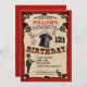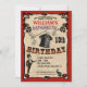 Abracadabra, allakazam! Está na hora de uma festa mágica e você está convidado! Este Convite de festas mágico lembra um poster mágico vintage. velhas ilustrações, fantasiosas imagens e tipografia mágica se juntam para o olhar perfeito. Amigos e família reaparecerão do nada para comparecer a este divertido caso!