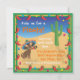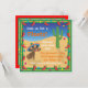 Esta chihuahua pequena bonito guardara um maraca e veste um sombrero colorido para convidá-lo a seu partido mexicano da festa. Quadro coberto em pimentas de pimentão vermelho. Mão tirada por McBooboo