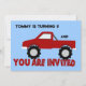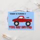 Um tema de excelente para o aniversário de um garoto. Fácil de personalizar! As letras esmagadas na frente do convite que dizem "você é convidado" podem ser removidas e substituídas por sua própria escolha de texto. Use o recurso de personalização para criar seu convite para caminhões monstros. Arte original de Rebecca da Menagerie do Night Owl, copyright 2011.