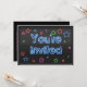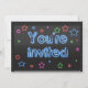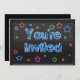 Este convite é brilhante com texto neon e estrelas. Ajuste o texto na parte traseira e você pode ir para qualquer festa ou evento para o qual você queira usar!