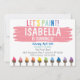 Obtenha desarrumado com este divertimento convidam para seu partido da pintura ou da arte! Edite simplesmente sua informação do partido e envie-a para imprimir tudo em um lugar! Fácil! Certifique-se por favor usar a característica da personalização se seu texto é demasiado grande ou demasiado pequeno para o espaço distribuído. Aprecie!