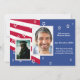 Reúna família e amigos para recebê-lo em estilo. Este convite patriótico é perfeito para a festa de boas-vindas de seu herói. As janelas de duas fotos estão sobrepostas com as cores vermelha, branca e azul com estrelas flutuantes na frente e atrás. Basta adicionar duas de suas fotos favoritas. O cartão é fácil de personalizar com seu texto, fonte, cor da fonte e escolha de seis tipos de papel.