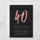 Celebrar 40 anos com este convite à rosa de ouro preto e falso com um grande estilizado 40