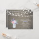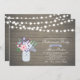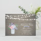 Celebre seu dia especial com este modelo de convite para na moda. Este design apresenta luzes de cordas, jarro de pedras e buquê de flores com um fundo de madeira rústico.