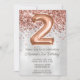 Convite de festas rosa Dourado de segundo aniversário prateado e convite de festas-ouro elegante e moderno rosa para uma menina de 2 anos com escrevendo moderno de escrita e balões de folha de papel divertida.