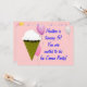 Convite de festas de Sorvete muito personalizável. Excelente para aniversários ou festa ou celebração infantil. A frente tem um cone e balões de sorvete bonitos, rosa e roxo. Cada imagem é separada e pode ser movida ou excluída. O dorso tem um monte de balões, rosa, roxo, amarelo. Esta imagem também pode ser movida ou excluída. Adicione seu próprio texto com muitos estilos de fonte e cores de onde escolher. Você também pode alterar a cor de fundo. Cartão de Aniversário Correspondente disponível!