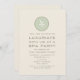 Um convite de festas spa com ilustração de uma fatia de pepino no topo. Personalize o texto verde com detalhes da sua ocasião.