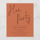 Festa Terrata Hen. Um alternativo de 4,5 pol x 5,6 pol com preço inferior. Disponível em um STOCK DE CARTÃO SEMI-GLOSS 110 lb, que é a opção padrão (mais espesso para convites), OU um STOCK de PAPEL THINNER FINISH 80 lb FINISH (ideal para gabinetes). Os envelopes são um extra opcional e são ligeiramente maiores que o tamanho da placa. Este design moderno em terracota para os seus Convidados da Noite de Hen, definiu um roteiro elegante para o título principal no topo e personaliza facilmente com os seus detalhes abaixo. Você também pode alterar as cores do texto e do plano de fundo em ambos os lados, se desejar através da opção Personalizar mais.